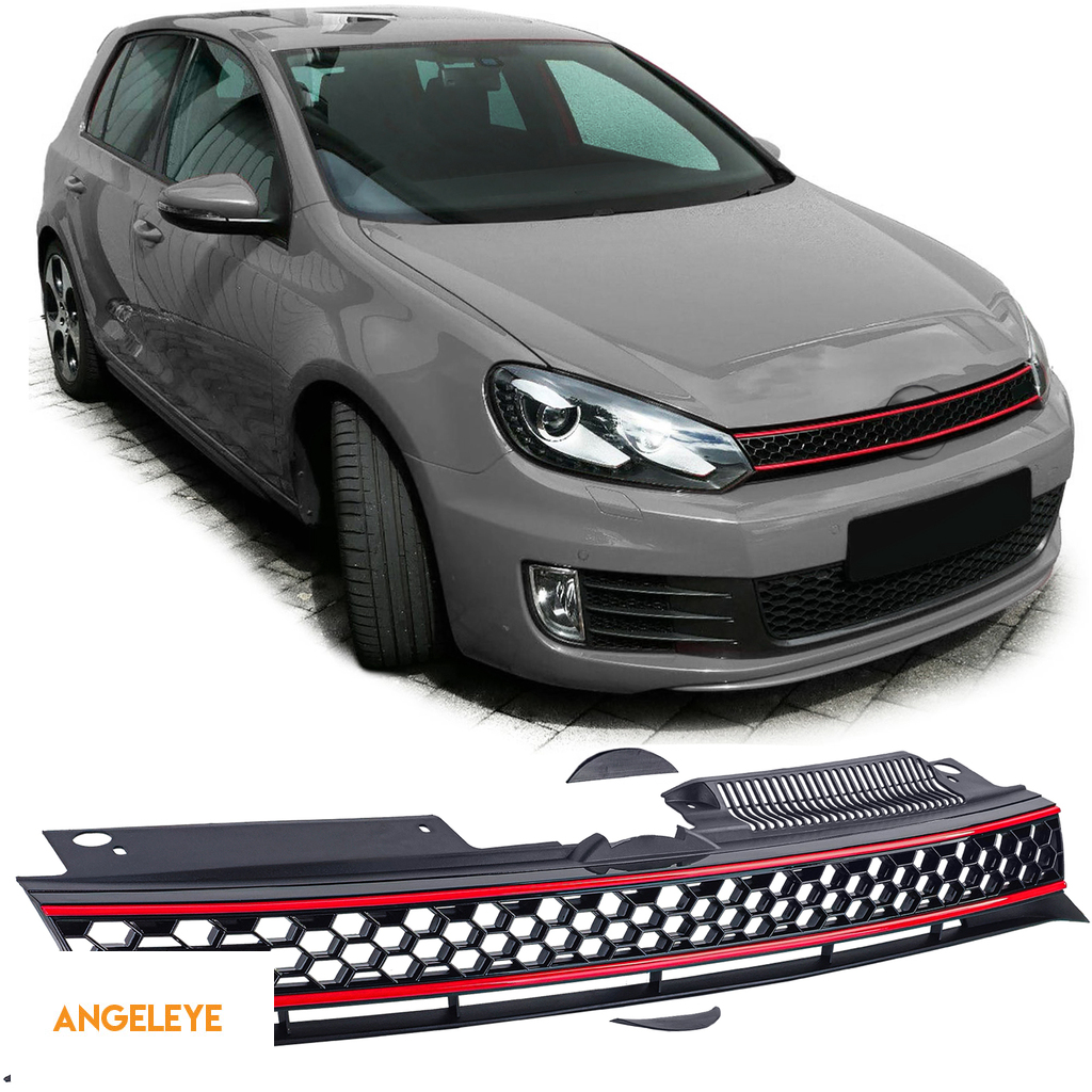 Grilă sport fără emblemă neagră roșie potrivită pentru VW Golf 6, inclusiv GTI 08-13