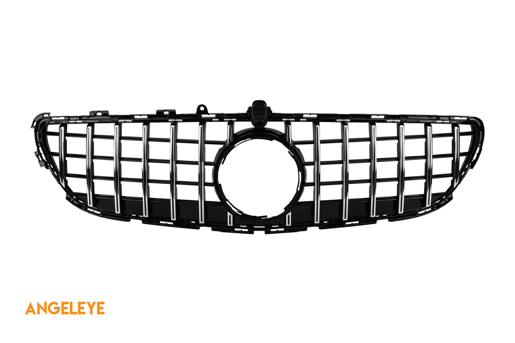 Grilă tip GT crom/neagră potrivită pentru Mercedes CLS C218 2015-2018 cu deschidere pentru cameră