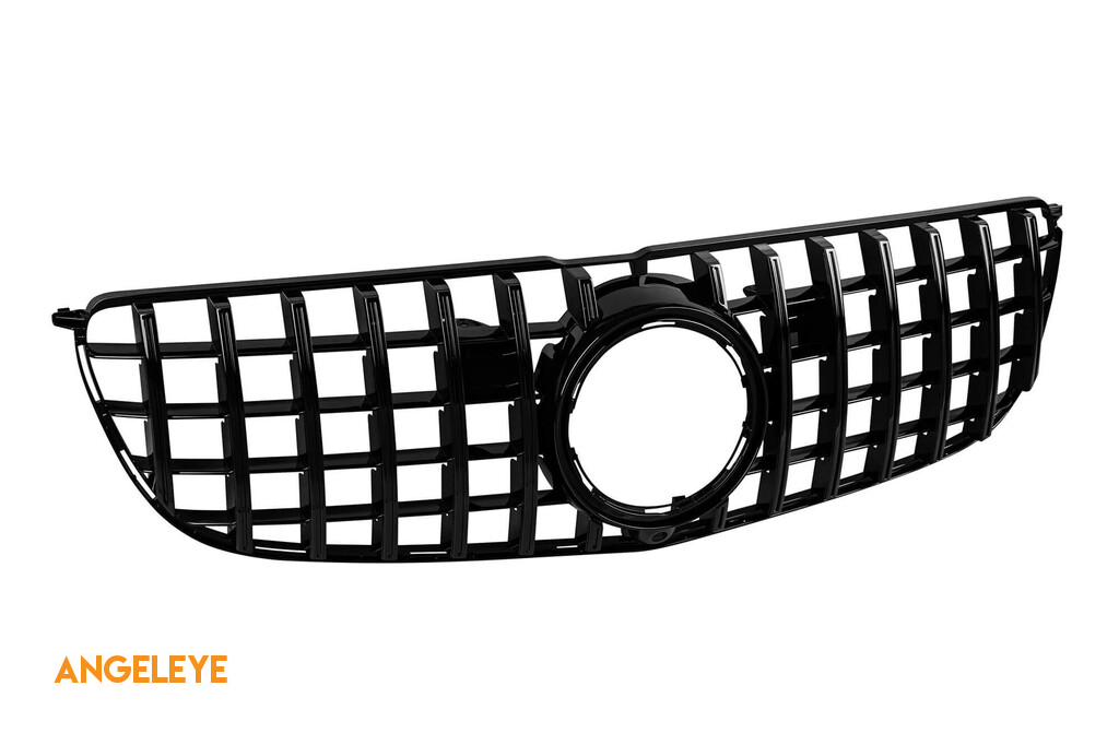Grilă tip GT cu lac negru, potrivită pentru Mercedes GLS X166 2016-2019, cu deschidere pentru cameră cu defect (prindere ruptă)