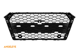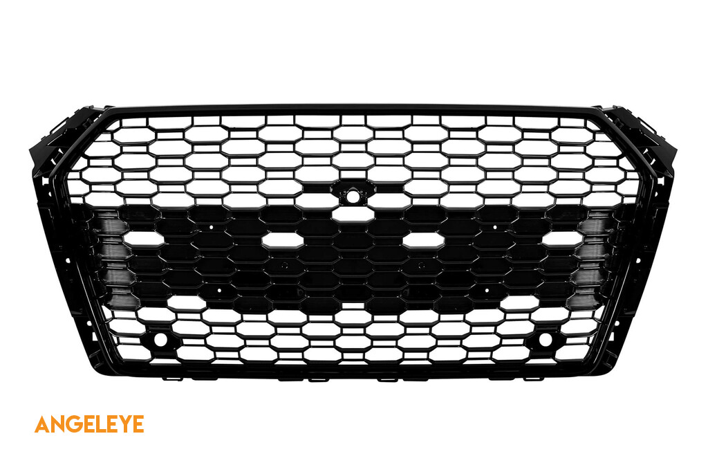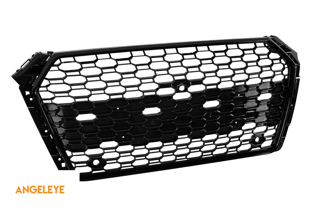Grilă tip RS4 cu lac negru, potrivită pentru Audi A4 2015-2019, cu deschideri pentru senzori de parcare