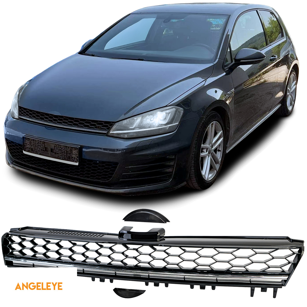 Grilaj radiator tip fagure fără emblemă cu bandă cromată, potrivit pentru VW Golf 7 12-17, inclusiv GTD