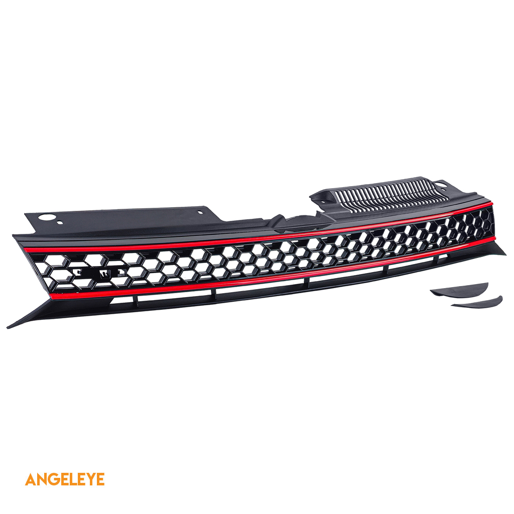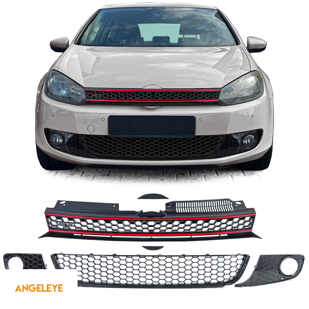 Grilaj radiator tip fagure fără emblemă + grilaj bara GLOSSY pentru VW Golf 6 08-13