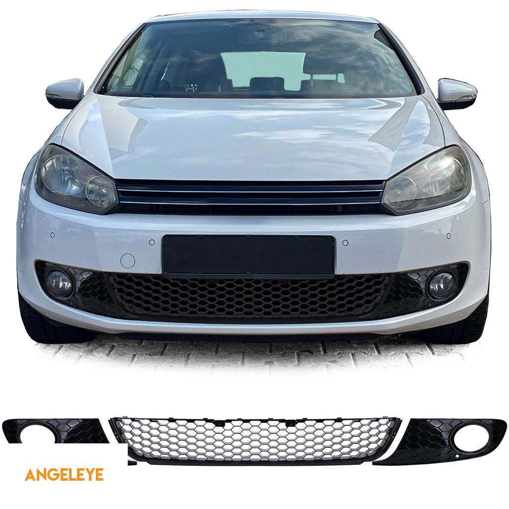 Grilaj tip fagure lucios pentru lumini de ceață de bara pentru VW Golf 6 08-13