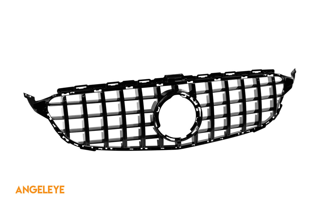Grilaj tip GT vopsit negru, potrivit pentru Mercedes Clasa C W205 sedan, S205 break, C205 coupe după 2019, fără deschidere pentru cameră