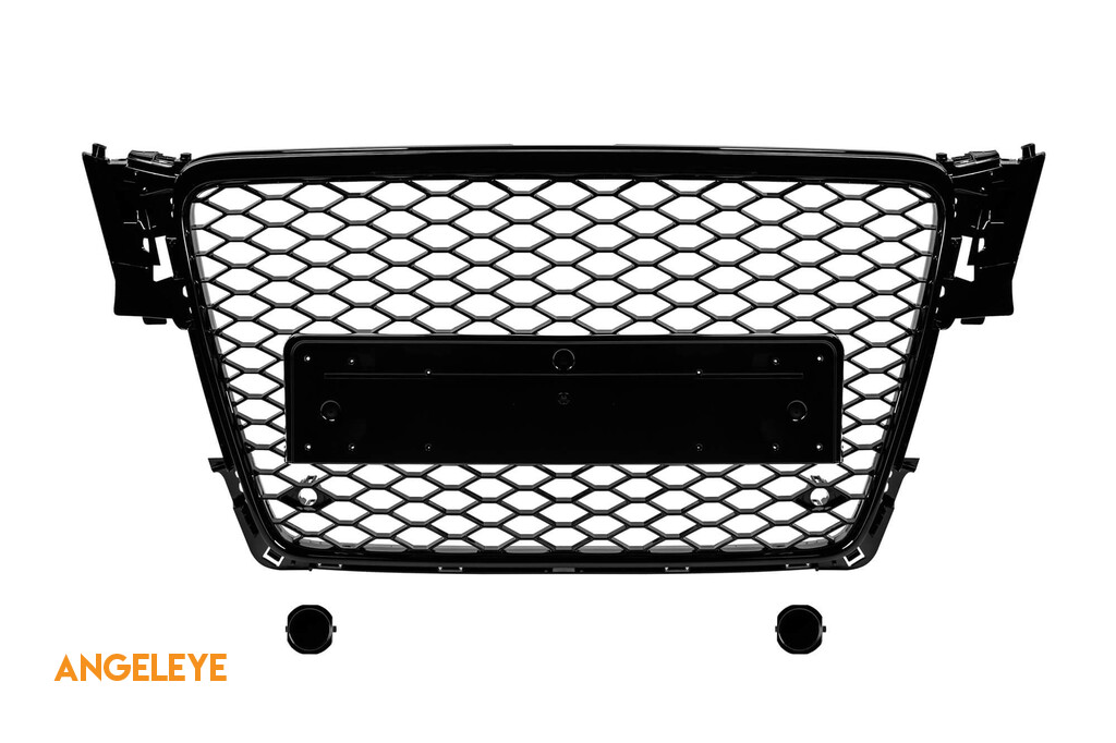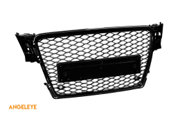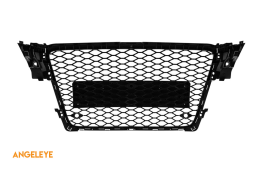 Grilaj tip RS4 cu lac negru, potrivit pentru Audi A4 2007-2011 pentru modelul echipat cu bara de protecție frontală standard, fără bază pentru emblemă, cu deschideri pentru senzori de parcare