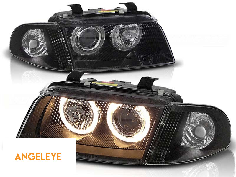 Kit de faruri de tuning cu ochi de înger halogen potrivit pentru Audi A4 B5 11.1994-12.1998 sedan/combinate, stânga și dreapta