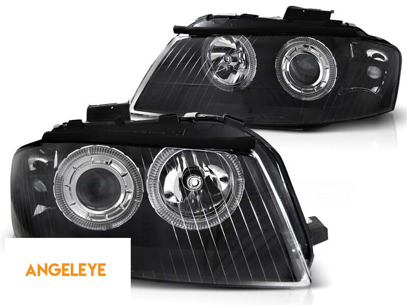 Kit de faruri tuning cu ochi de înger halogen potrivit pentru Audi A3 8P 05.2003-03.2008 3D/5D, stânga și dreapta