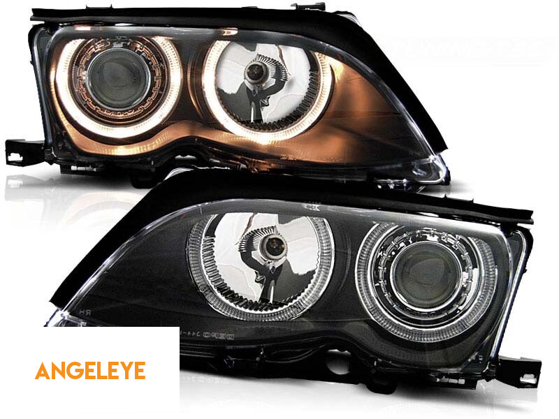 Kit de faruri tuning cu ochi de înger halogen potrivit pentru BMW 3 E46 09.2001-03.2005 sedan/combinate, stânga și dreapta