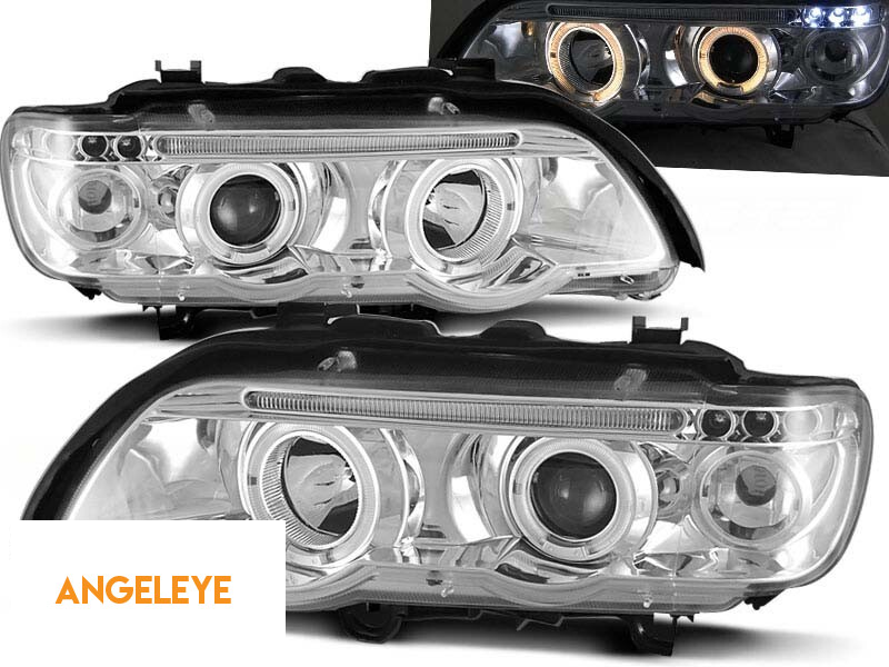 Kit de faruri tuning cu ochi de înger halogen potrivit pentru BMW X5 E53 09.1999-10.2003, stânga și dreapta