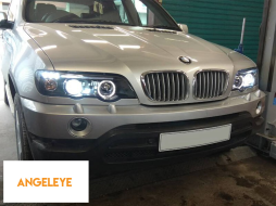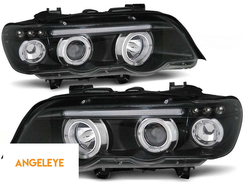Kit de faruri tuning cu ochi de înger halogen potrivit pentru BMW X5 E53 09.1999-10.2003, stânga și dreapta