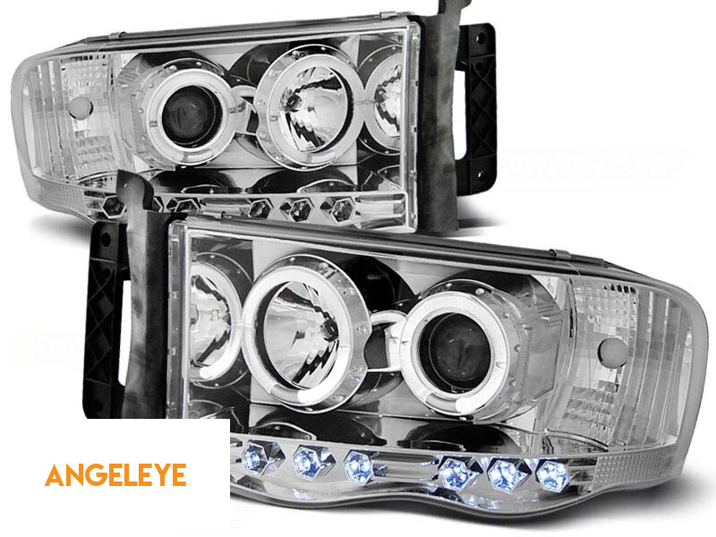 Kit de faruri tuning cu ochi de înger halogen potrivit pentru Dodge RAM 2002-2006, stânga și dreapta