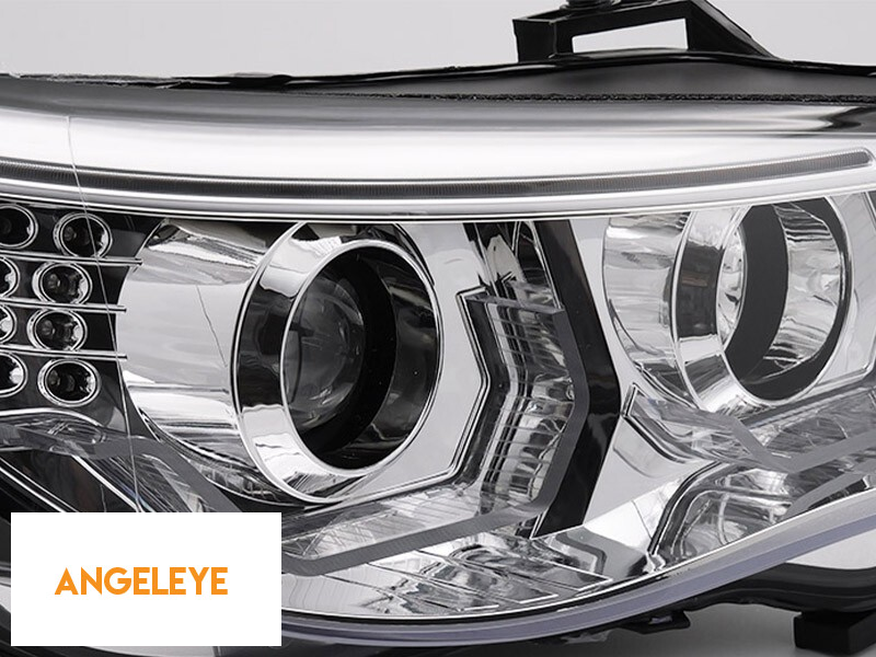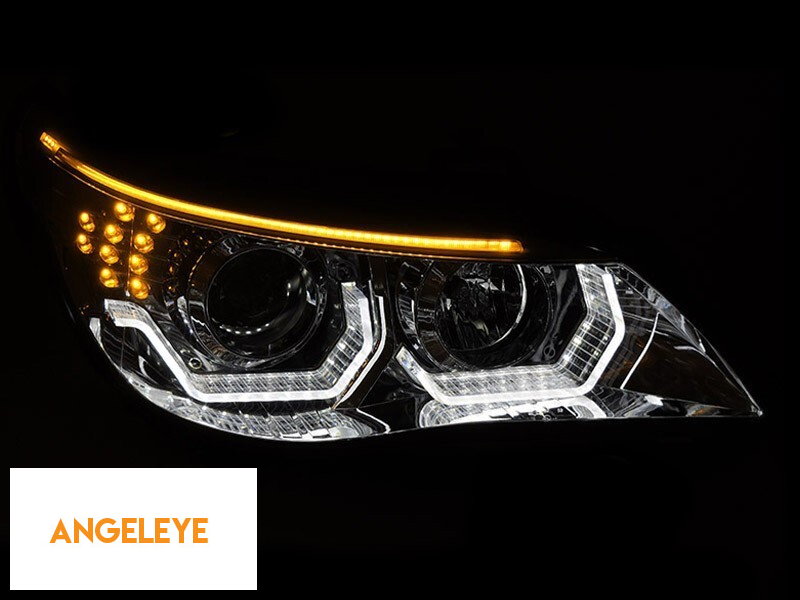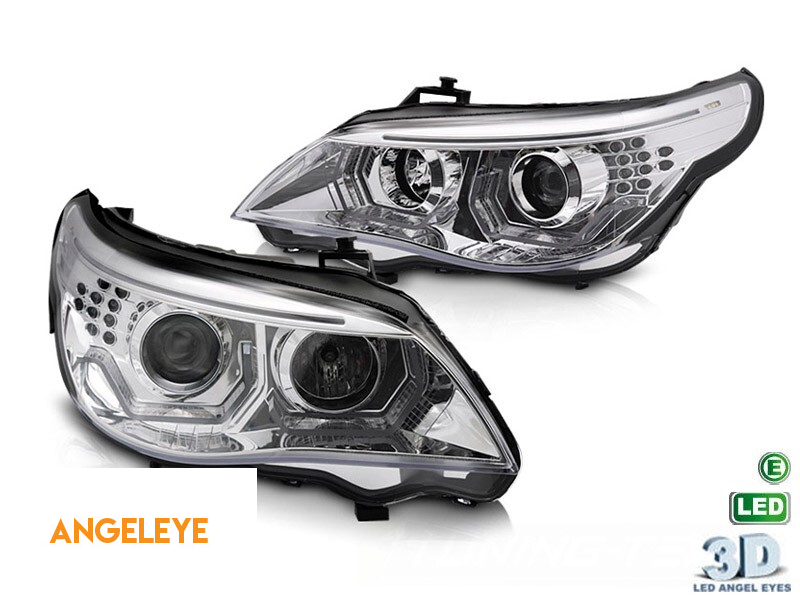 Kit de faruri tuning cu ochi de înger LED 3D, potrivit pentru BMW Seria 5 E60 sedan, E61 touring 2003-2007 cu bază cromată, stânga și dreapta, pentru modelul cu faruri halogen.