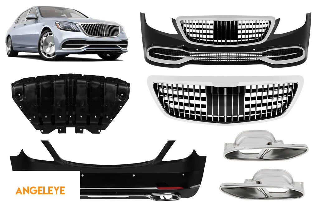 Îmbunătățiți nivelul Mercedes-ului dumneavoastră S-Class W222 2017-2020 cu kitul de tuning stil 560, care aduce un sentiment de prestigiu excepțional și estetică modernă. Punctul culminant principal în față este grila MB stil crom/negru, care transformă instantaneu aspectul vehiculului, oferindu-i un aspect mai autoritar și luxos. În combinație cu spoilerele frontale și posterioare precis conturate, silueta flagship-ului capătă un caracter mai definit și contemporan, care atrage atenția cu putere discretă și stil impecabil.