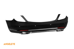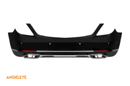 Partea din spate a vehiculului dispune de un difuzor completat de capetele de evacuare cromate în stil iconic -o--o-, care completează aspectul într-un mod high-tech și elegant. Construcția din plastic ABS de înaltă calitate, flexibil și rezistent la impact garantează o durabilitate excelentă în toate condițiile de drum. Fiecare detaliu, colț și deschidere tehnologică a fost supusă unei prelucrări precise pentru a elimina marginile ascuțite. Această abordare atentă asigură o potrivire 100% cu liniile Mercedes S-Class W222 2017-2020, deoarece designul permite o instalare ușoară folosind punctele de montare din fabrică.