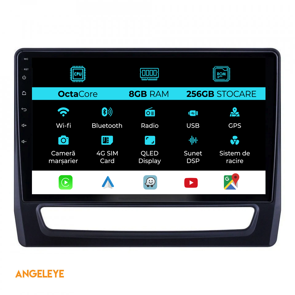 Sistem de operare: Android 13 Procesor: Octa-core 2,0Ghz Memorie RAM: 8GB Stocare interna (ROM): 256GB Dimensiune Display: 10 Inch Rezolutie ecran: 1280x720p Bluetooth: Bluetooth pentru apeluri, descarcare agenda telefonica si redare muzica WiFi: Da (Integrat) Slot Sim 4G: Da Conectivitate retea: 4G, Hotspot telefon, router extern, dongle 3G sau 4G, CarPlay Android Auto Microfon: Microfon integrat, cu posibilitate de conectare microfon extern Alimentare: 12V Putere audio: 4x45W Egalizator DSP: Procesor de sunet digital (DSP EQ) Compatibilitate USB SD: Compatibil cu USB de pana la 128GB, suport SD prin adaptor USB Compatibilitate aplicatii Android: Compatibil cu majoritatea aplicatiilor Android din Google Play Compatibilitate CarPlay si Android Auto: Da, compatibil cu iOS (CarPlay) si Android (Android Auto) Suport pentru limbi:a Romana, Engleza, Maghiara, Spaniola, Italiana, Germana, etc. Tip ecran: TouchScreen capacitiv, multi-touch, IPS Setari luminozitate: Da Radio RDS: Da Iesire subwoofer RCA: Da Iesire video RCA: Da, cu ajutorul unui adaptor USB Iesire audio RCA: Da GPS: Da, (Google Maps, Waze, HereWeGo) Senzori de parcare: Da (Preluare senzori de parcare cu afisaj unde este cazul) Control volan: Da (Preluare comenzi volan cu canbus sau analogic unde este cazul) Compatibilitate camera DVR: Da Compatibilitate camera marsarier: Da Manual de utilizare: Da Continut pachet: Navigatie Android Rama adaptoare Cablaj de alimentare Antena GPS Antena 4G Conectori RCA Cablaj pentru camera de marsarier, 2 cabluri USB Canbus (doar daca este cazul) Certificat de garantie Factura fiscala Navigatia este compatibila cu urmatoarele marci auto : Mitsubishi : ASX 2 (2019 - 2025)