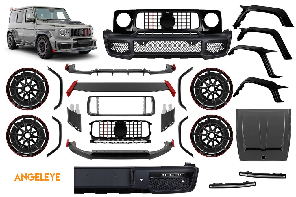 Transformă-ți Mercedes G-Class W464 cu pachetul premium de tuning B900 Design – o soluție completă de styling care oferă vehiculului tău un aspect mai agresiv, dinamic și exclusiv. Proiectat special pentru modelele G-Class din 2018 până în 2024, acest pachet combină eleganța sportivă, elementele de fibră de carbon de înaltă calitate și o prezență impunătoare pe drum. Instalarea profesională de către un specialist certificat în tuning este foarte recomandată. Acest produs este destinat exclusiv utilizării off-road sau pentru expoziții, cu excepția cazului în care este aprobat pentru utilizare pe drum conform reglementărilor locale.