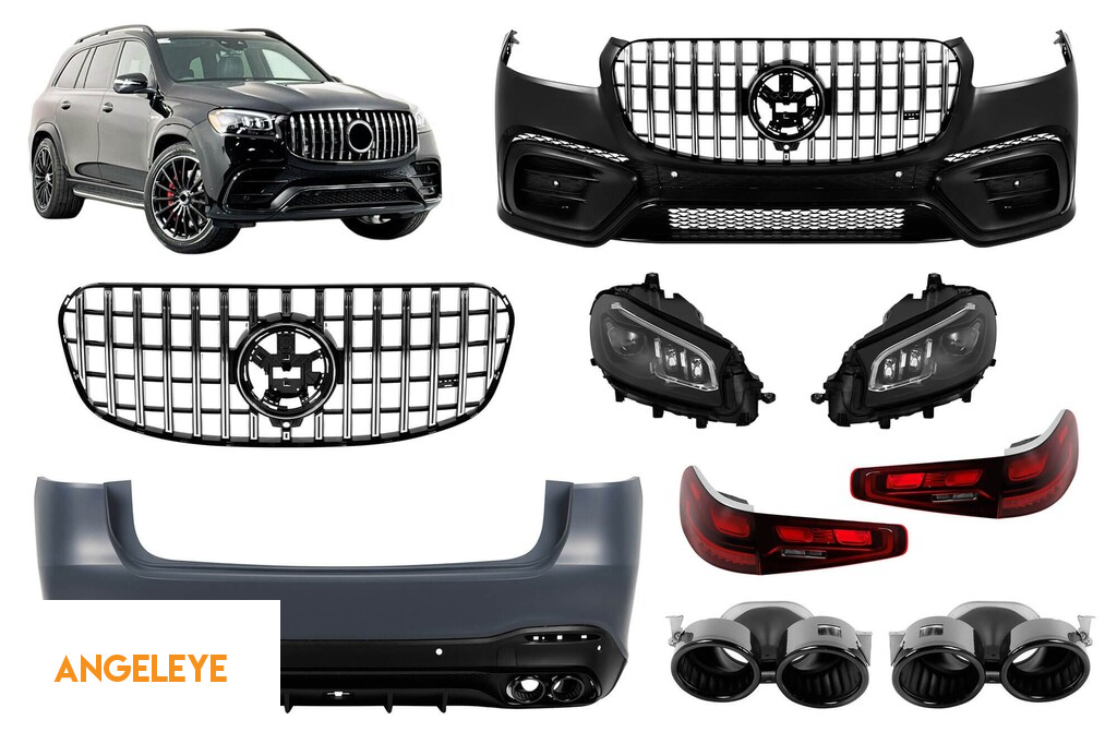 Pachet de tuning A Design Line potrivit pentru Mercedes GLS X167 2020-2023, după 2024, cu elemente negre, cu faruri și stopuri