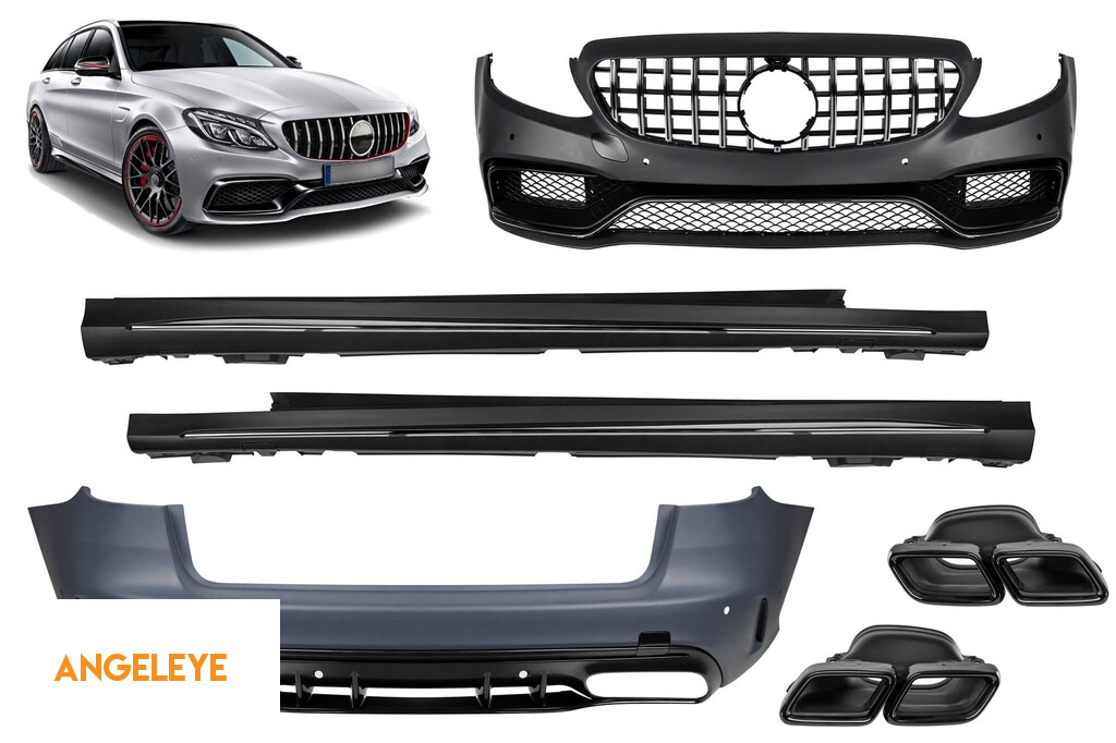 Pachet de tuning design A potrivit pentru Mercedes C-Class S205 2013-2018 cu grilă GT crom/neagră și terminații de evacuare negre