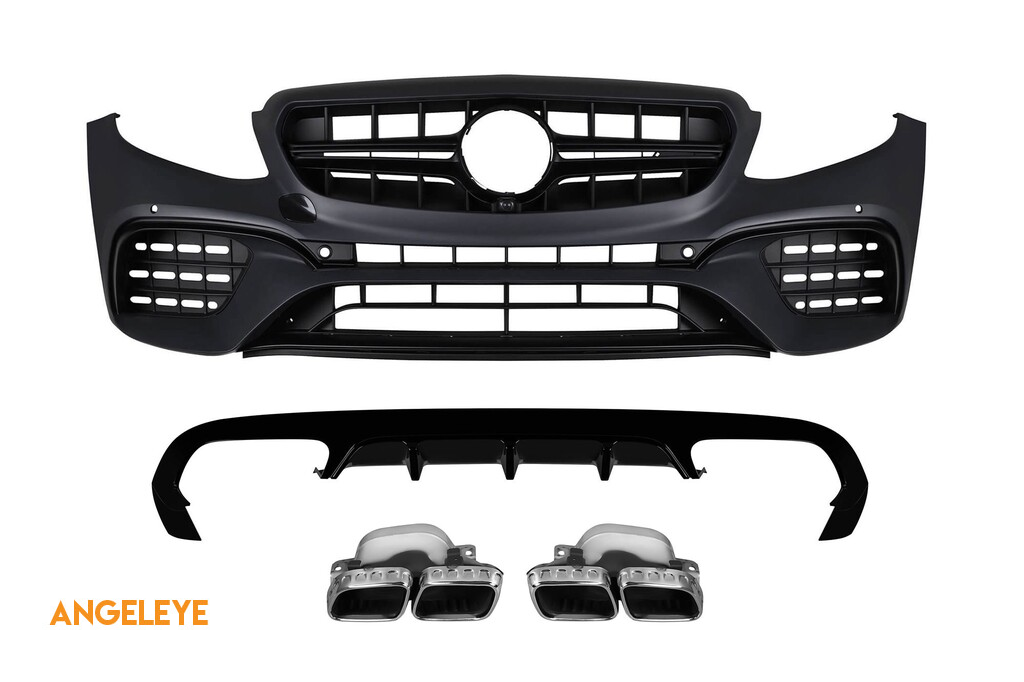 Pachetul de design tip E63 potrivit pentru Mercedes E-Class C238 coupe, A238 cabrio 2017-2019 cu capete cromate, pentru modelul cu bara de protecție spate A Design
