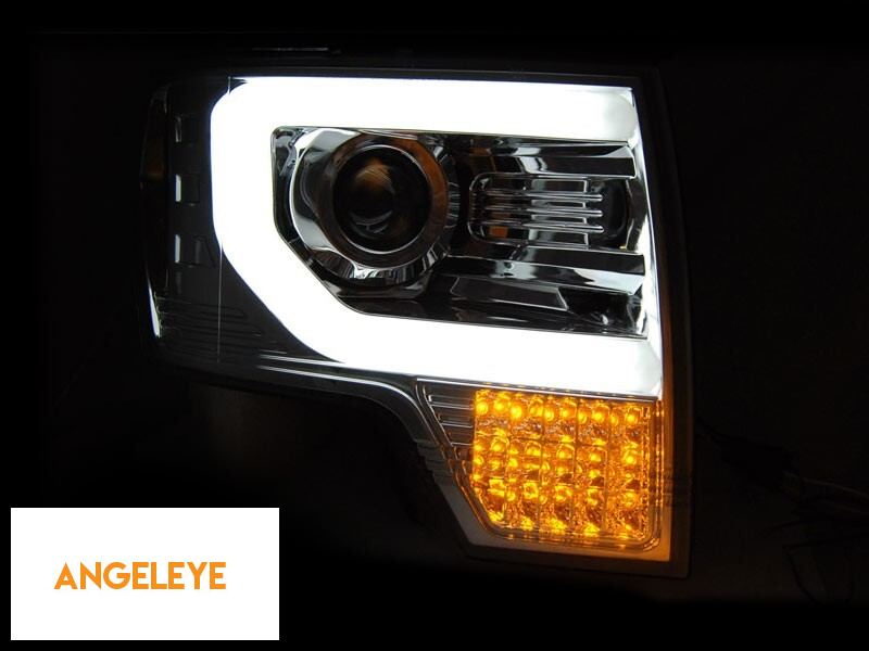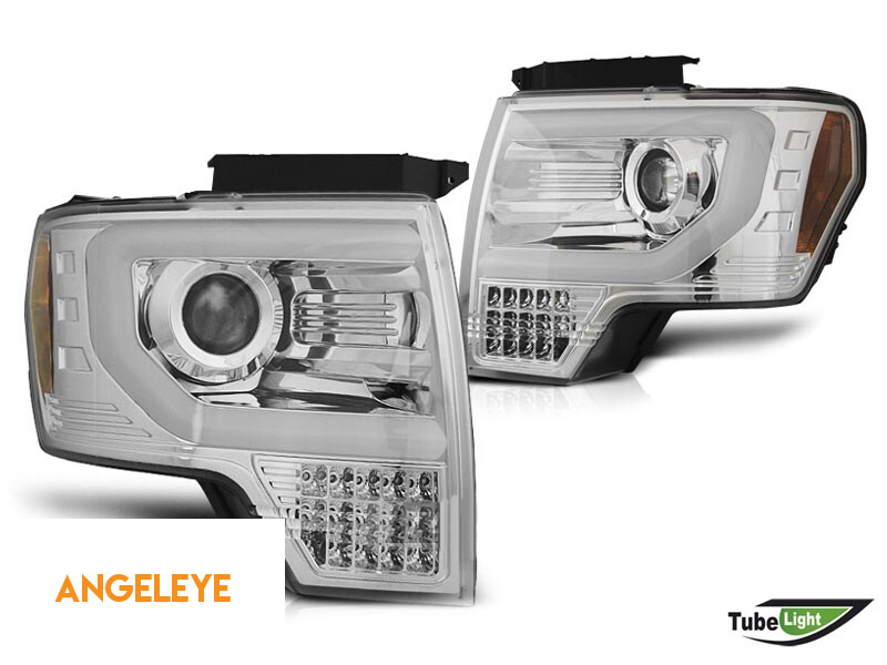 Set de faruri de tuning potrivit pentru Ford F150 2008-2014 cu bază cromată, stânga și dreapta