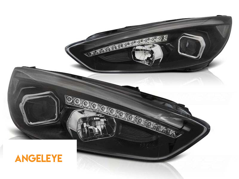 Set de faruri de tuning potrivit pentru Ford Focus MK3 după 2015 cu bază neagră, stânga și dreapta