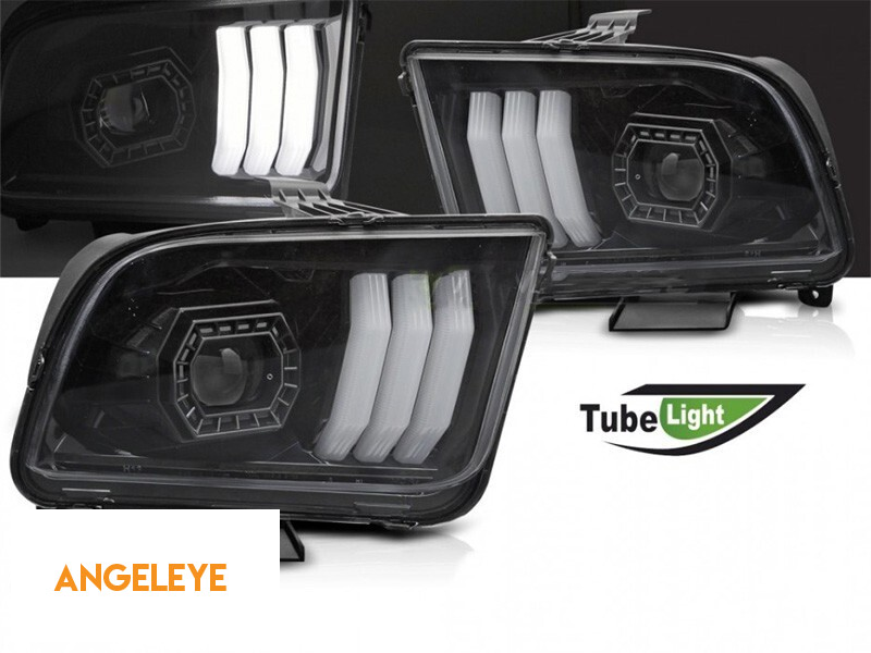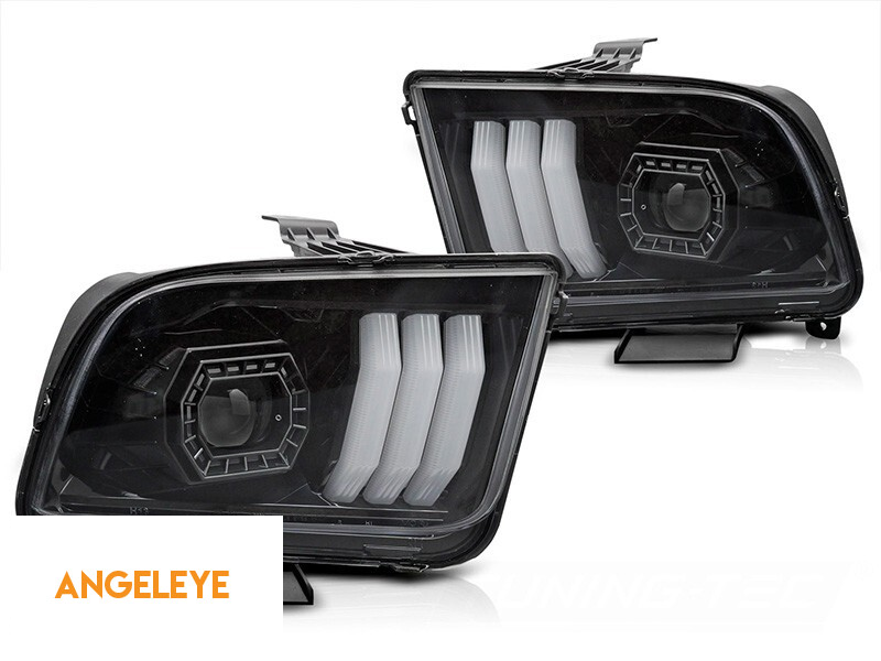 Set de faruri de tuning potrivit pentru Ford Mustang 2004-2009 cu bază neagră