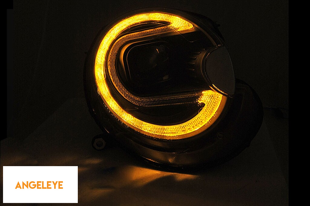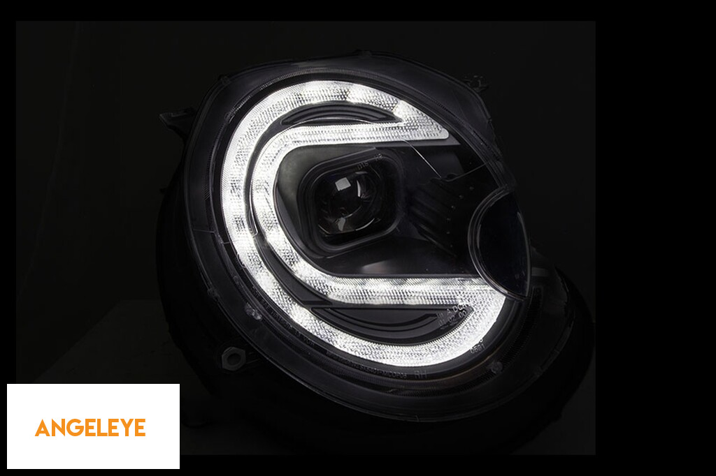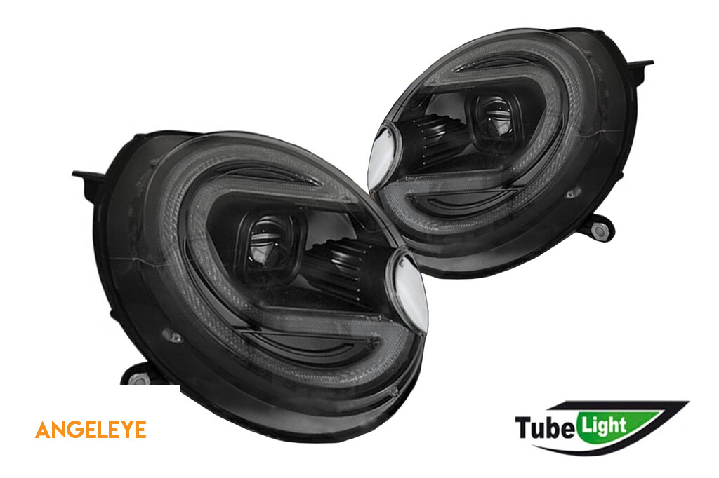 Set de faruri de tuning potrivit pentru Mini Cooper R56 2009-2013 cu bază neagră, stânga și dreapta