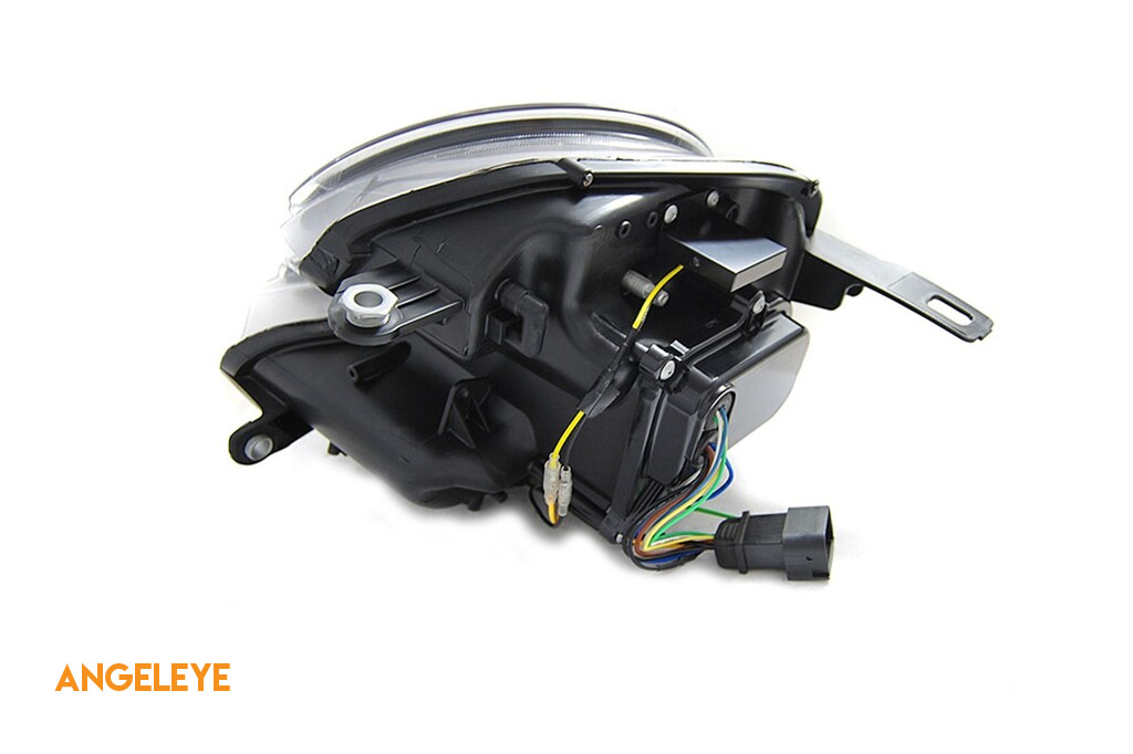 Farurile sunt unul dintre cele mai importante elemente ale vehiculului. O bună vizibilitate depinde foarte mult de acestea. Acest model de faruri poate să vă ofere lumini de poziție sub formă de 'Ochi de Înger'. O lentilă din sticlă de înaltă calitate se ocupă de grafica perfectă a luminii emise, îmbunătățind și direcționând dispersia luminii emise, indiferent dacă se folosește o bulb halogen sau xenon. Acest model de faruri utilizează becuri halogene pentru fazele scurte și lungi, fiecare model având o configurație individuală. Puteți găsi informații complete despre tipul de becuri utilizate în faruri în secțiunea 'Informații Tehnice'. Farurile sunt certificate E-mark. Designul lor inovator reîmprospătează aspectul vehiculului, făcându-l mai futurist și atrăgător. Datorită acestor faruri, veți crește vizibilitatea suprafeței drumului cu până la 200%.