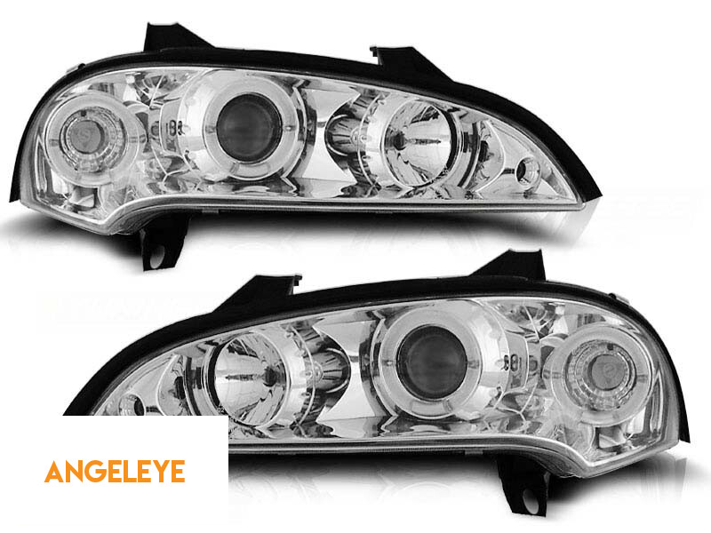 Farurile sunt unul dintre cele mai importante elemente ale vehiculului. O bună vizibilitate depinde foarte mult de ele. Acest model de faruri poate să vă ofere lumini de poziție sub formă de 'Ochi de Înger'. O lentilă din sticlă de înaltă calitate se ocupă de modelul perfect al luminii emise, îmbunătățind și direcționând dispersia luminii emise, indiferent dacă se folosește o lampă halogenă sau xenon. Lumina de poziție tip 'Ochi de Înger' este compusă din unități de iluminat rotunde/ovale. În funcție de modelul lor, acestea pot emite lumină albă caldă sau albă rece. Pot fi utilizate ca lumini de zi. Acest model de faruri folosește lămpi halogene pentru faza scurtă și faza lungă, fiecare model având o configurație individuală. Puteți găsi informații complete referitoare la tipul de lămpi utilizate în faruri în secțiunea 'Informații Tehnice'. Farurile sunt certificate conform E-mark. Designul lor inovator reîmprospătează aspectul vehiculului, făcându-l mai futurist și atractiv. Datorită acestor faruri, veți crește vizibilitatea suprafeței drumului cu până la 200%.