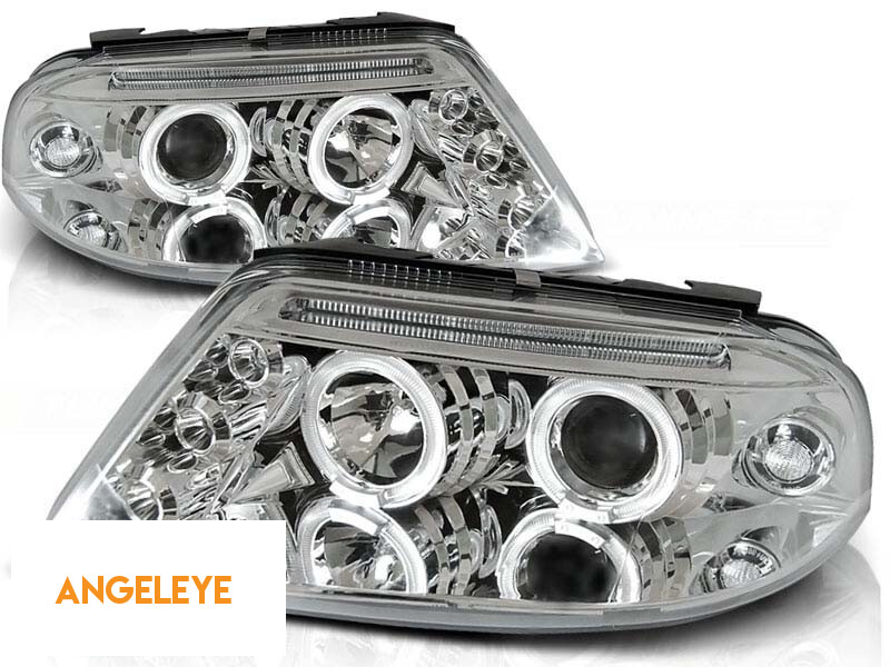 Farurile sunt unul dintre cele mai importante elemente ale vehiculului. O bună vizibilitate depinde foarte mult de ele. Acest model de faruri poate să vă ofere lumini de poziție sub forma 'Ochilor de înger'. O lentilă din sticlă de înaltă calitate se ocupă de grafica perfectă a luminii emise, îmbunătățind și direcționând dispersia luminii emise, indiferent dacă se folosesc becuri halogen sau xenon. Lumina de poziție tip 'Ochii de înger' este formată din surse de lumină rotunde/ovale. În funcție de modelul lor, acestea pot emite lumină albă caldă sau albă rece. Pot fi folosite ca lumini de zi. Acest model de faruri folosește becuri halogen pentru faza scurtă și faza lungă, fiecare model având o configurație individuală. Puteți găsi informații complete despre tipul de becuri utilizate în faruri în secțiunea 'Informații tehnice'. Farurile sunt certificate E-mark. Designul lor inovator reîmprospătează aspectul vehiculului, făcându-l mai futurist și atractiv. Datorită acestor faruri, veți crește vizibilitatea pe drum cu până la 200%.