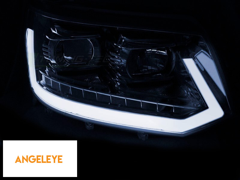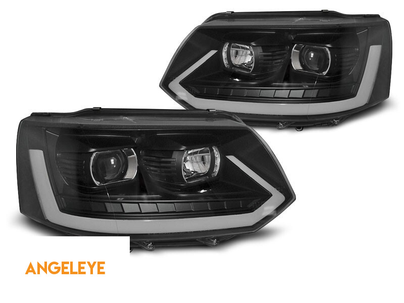 Set de faruri de tuning tip T6 potrivit pentru Volkswagen T5 2010-2015 cu bază neagră, stânga și dreapta