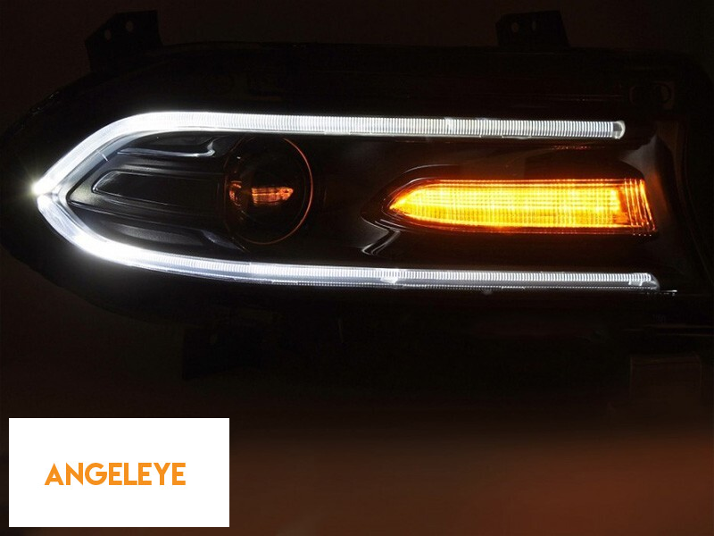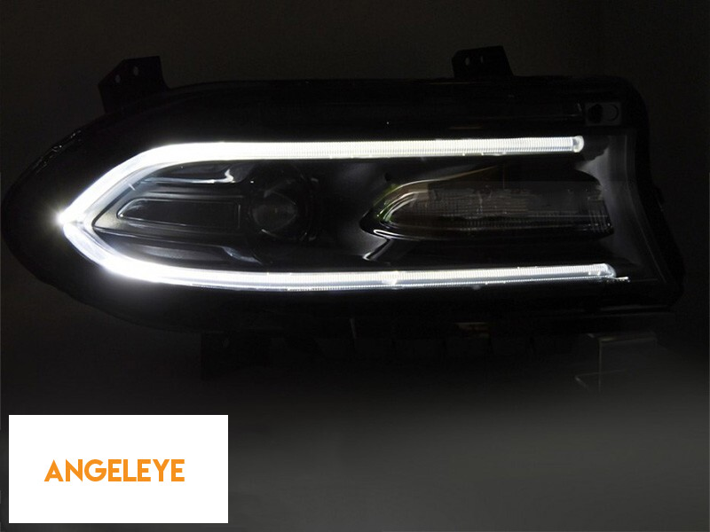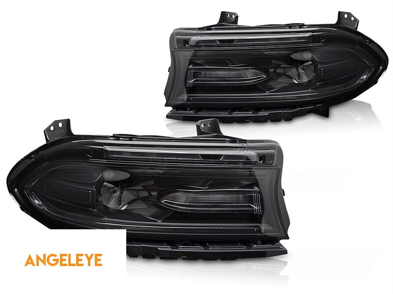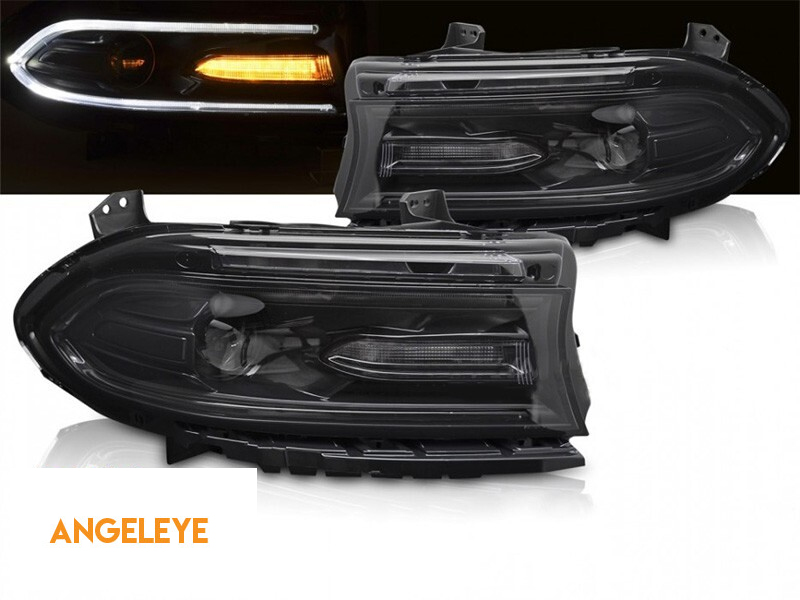Set de faruri LED de tuning potrivit pentru Dodge Charger 2014-2023 cu bază neagră, pentru modelul cu lumini DRL de fabrică, stânga și dreapta
