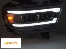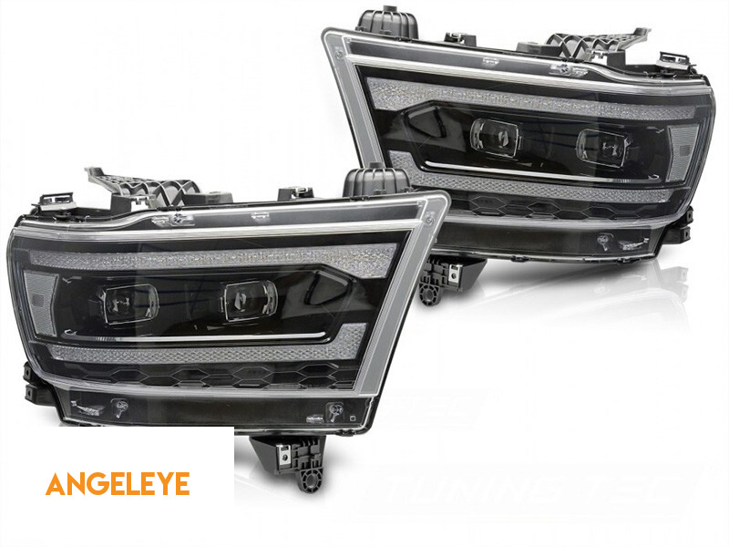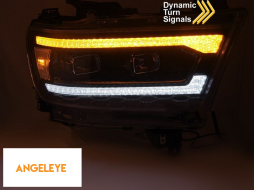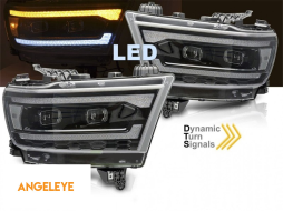 Set de faruri LED de tuning potrivit pentru Dodge Ram 1500 2019-2022 cu bază neagră, cu semnale de întoarcere dinamice, pentru modelul cu lumini DRL de fabrică, cu funcția "Bun venit", stânga și dreap