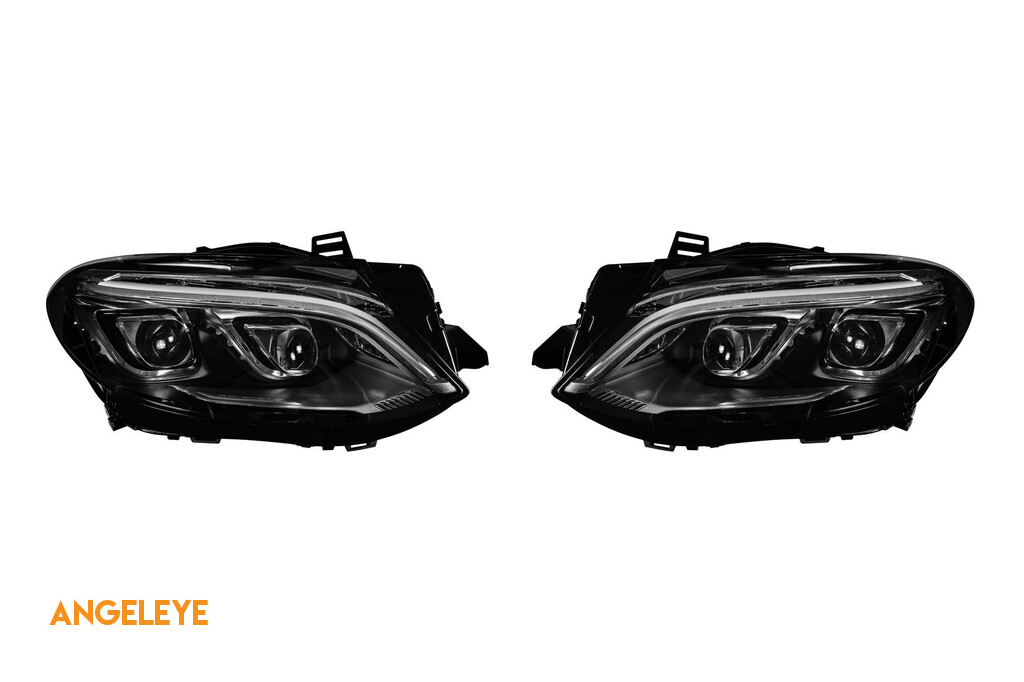 Set de faruri LED de tuning potrivit pentru Mercedes ML 2012-2015, carcasă neagră, potrivit pentru modelele cu faruri Xenon și conversie de bara de protecție stil GLE 63