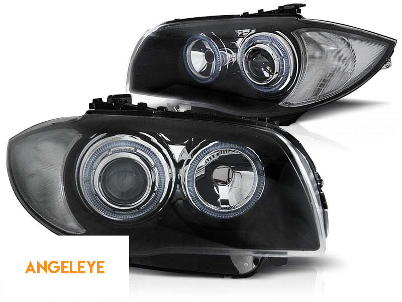 Set de faruri tuning cu ochi de înger halogen, potrivit pentru BMW 1 E81 2004-2011 / E82 2007-2011 / E87 2004-2011 / E88 2007-2013, stânga și dreapta