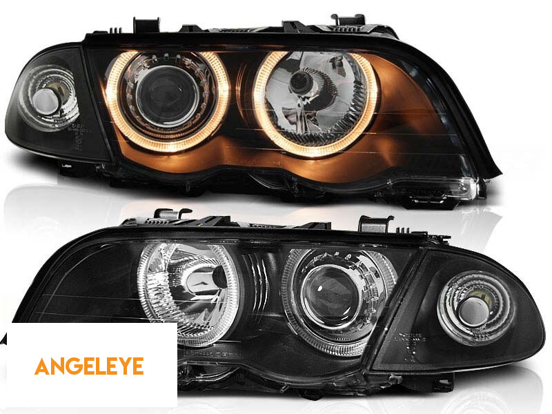 Set de faruri tuning cu ochi de înger halogen, potrivit pentru BMW 3 E46 05.1998-08.2001 sedan/combinate, stânga și dreapta