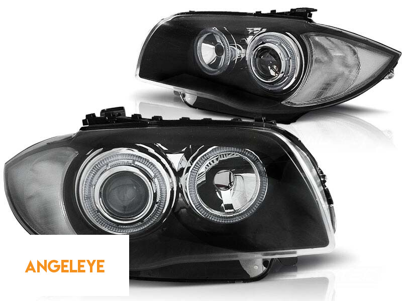Set de faruri tuning cu ochi de înger LED, potrivit pentru BMW 1 E81 2004-2011 / E82 2007-2011 / E87 2004-2011 / E88 2007-2013, stânga și dreapta