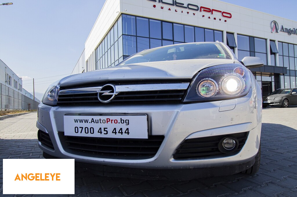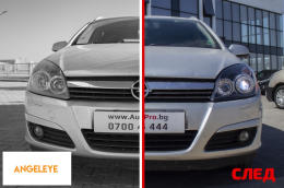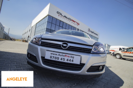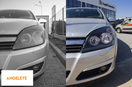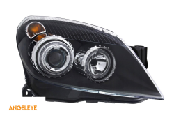 Set de faruri tuning cu ochi de înger potrivit pentru Opel Astra H 2004-2009 sedan, break cu bază neagră, stânga și dreapta