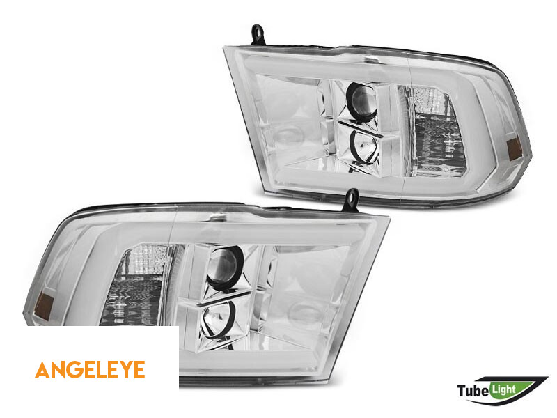 Set de faruri tuning potrivit pentru Dodge Ram 2009-2018 cu bază cromată, stânga și dreapta