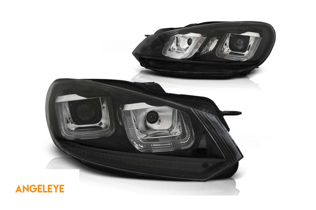 Set de faruri tuning potrivit pentru VW Golf VI 2008-2012 cu bază neagră, stânga și dreapta