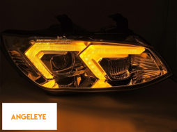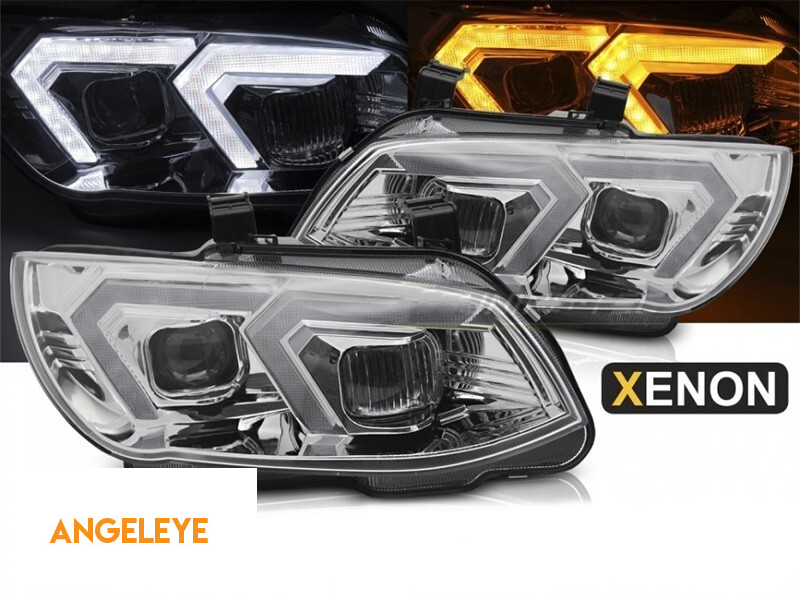 Farurile sunt unul dintre cele mai importante elemente ale vehiculului. O bună vizibilitate depinde foarte mult de acestea. Acest model de faruri dispune de o bandă LED pentru lumini de zi sau lumini de poziție. O lentilă din sticlă de înaltă calitate asigură o distribuție perfectă a luminii emise și direcționează eficient lumina. Designul lor inovator reîmprospătează aspectul vehiculului, făcându-l mai futurist și atractiv. Datorită acestor faruri, veți crește vizibilitatea suprafeței drumului cu până la 200%.
