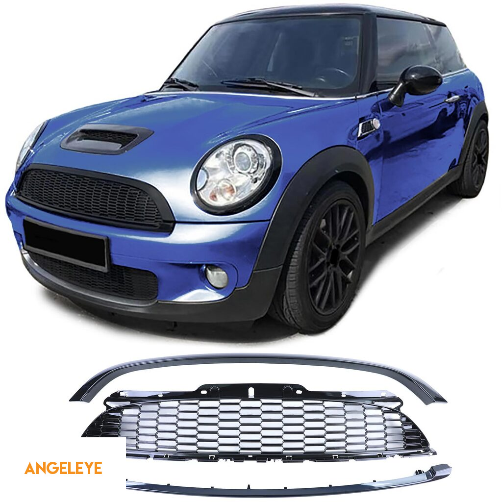 Set grilaj radiator 3 piese negru lucios, potrivit pentru Mini One Cooper JCW R56 R57 R58 R59