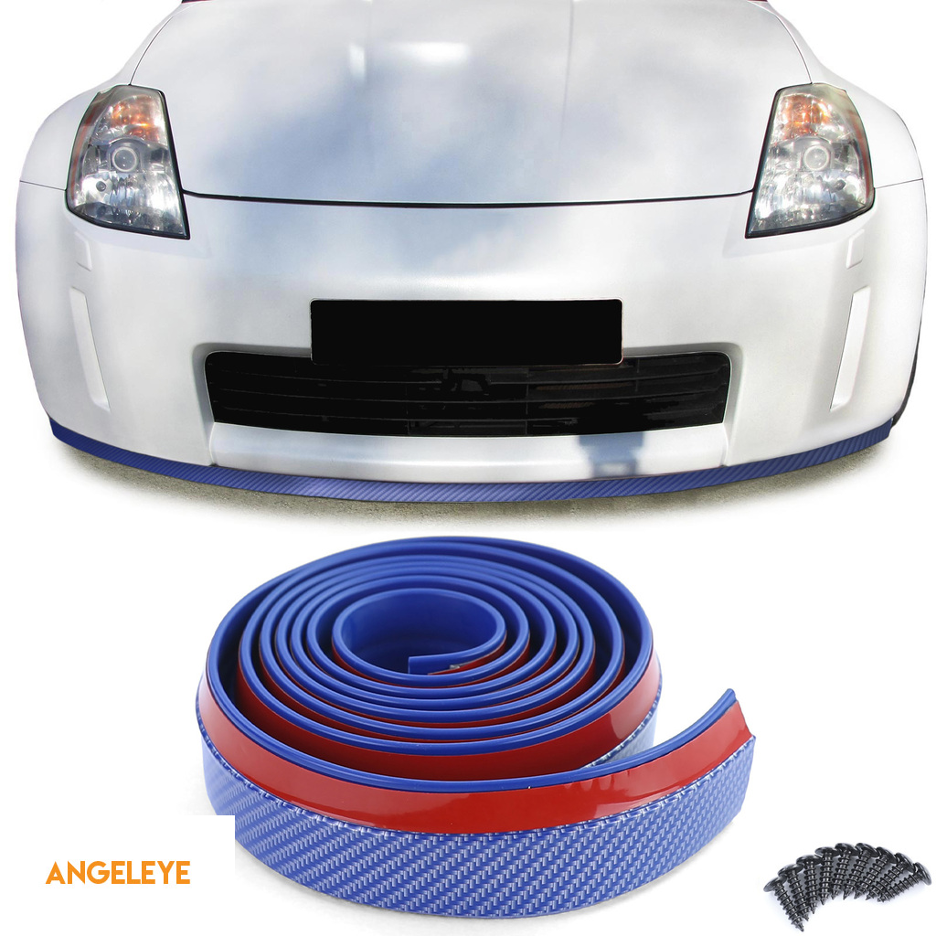 Spoiler frontal, fâlci laterale universale, flexibile, 2.5m x 5cm, aspect carbon, albastru