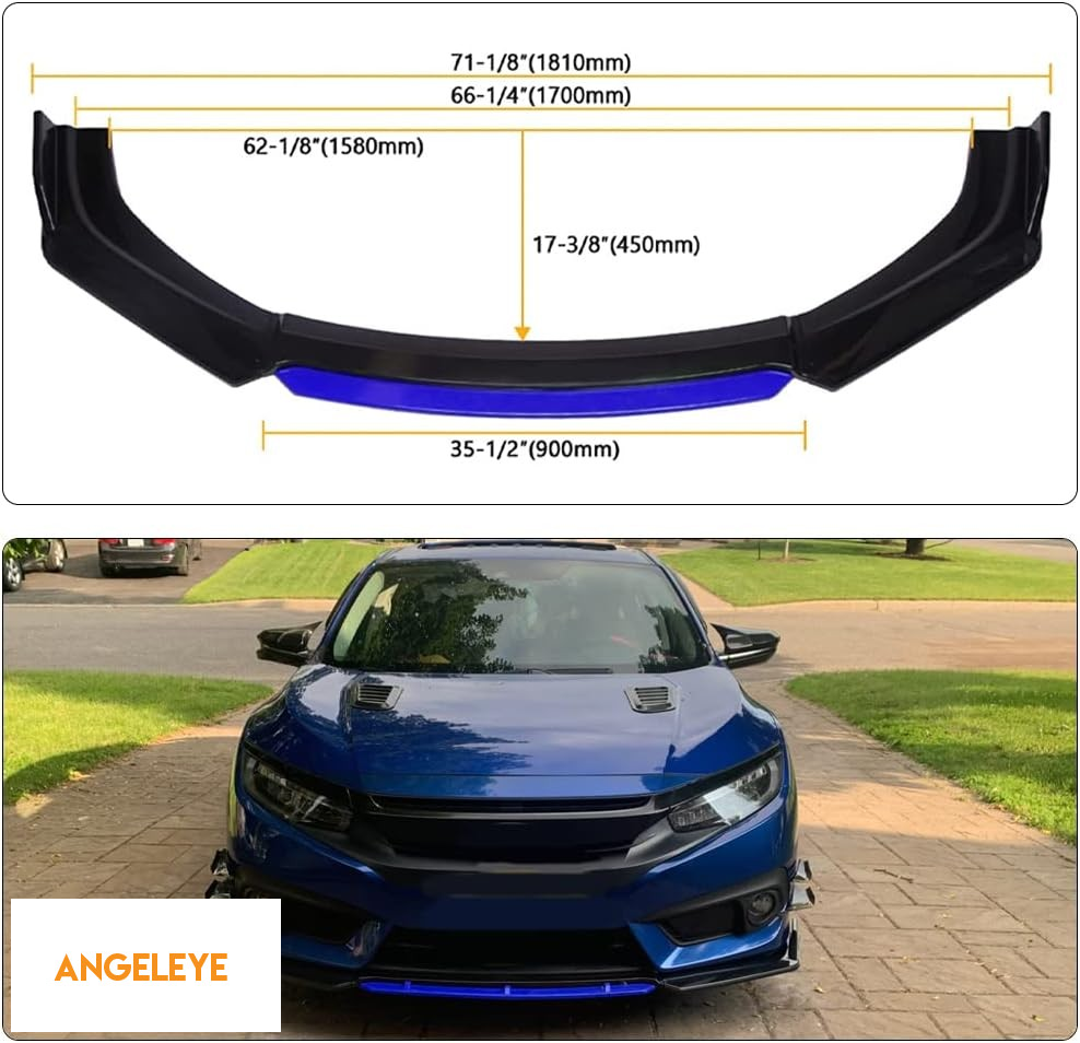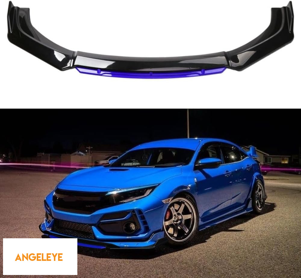 Spoiler frontal universal în lac piano negru cu accent albastru