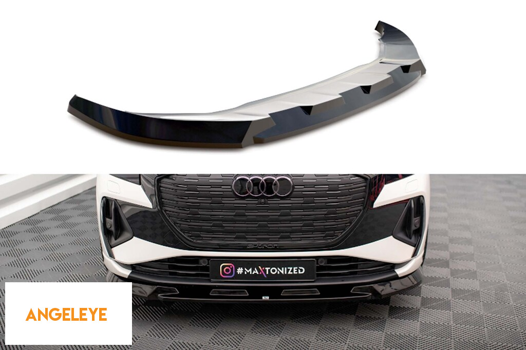 Spoiler Maxton Design versiunea 1 potrivit pentru bara frontală a Audi Q4 E-tron Sportback MK1 după 2021, lac negru
