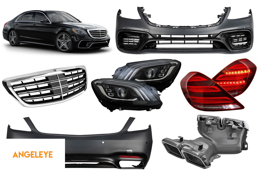 Pachetul unic combo vă va oferi un design complet S63 A Design pentru clasa S W222 din fabrică. Bumperele sunt fabricate din plastic ABS de înaltă calitate și flexibil. În pachet, veți găsi, de asemenea: faruri LED, stopuri LED, grilă tip S63 și difuzoare tip S63.